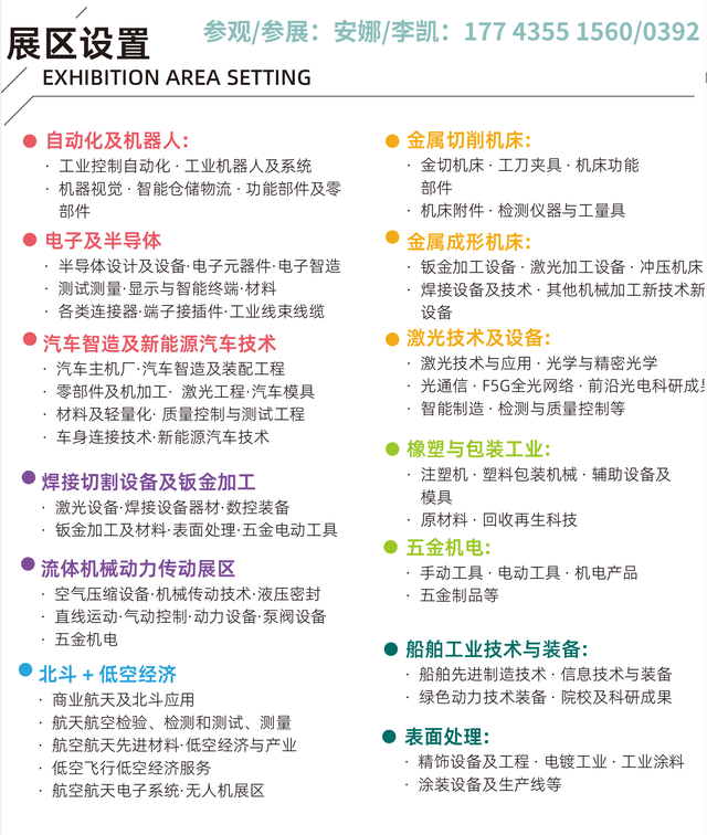本次展会的参展范畴很是普遍,涵盖了工业制制全财产链的最新手艺和设备。从动化及机械人、金属切削机床、金属成形机床、激光手艺及设备等焦点产物将成为展会的亮点。五金机电、橡塑取包拆工业、船舶工业手艺取配备、电子及半导体、汽车智制及新能源汽车手艺、斗极+低空经济等也将逐个表态。