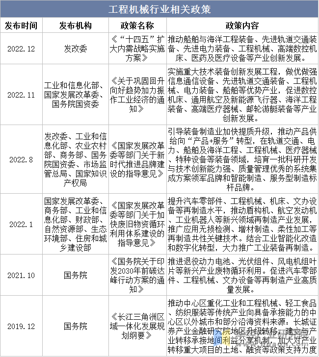 本文节选自华经财产研究院发布的《2023年中国工程机械行业现状及趋向阐发,国内次要工程机械产物发卖量大幅攀升「图」》,如需获取全文内容,可进入华经谍报网搜刮查看。工程机械都是国度政策注沉的对象。各大部分近年来也公布了不少相关方案取指点看法,持续指导以及激励我国工程机械行业的成长。